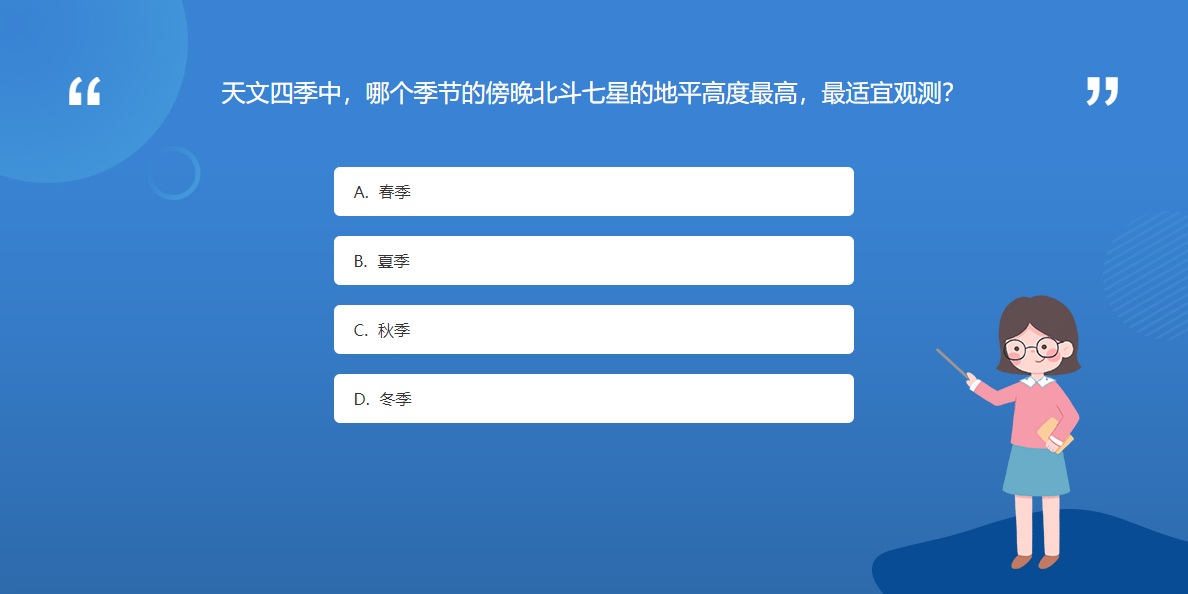 天文星空体育官网入口网站問答:哪個季節的傍晚北鬥七星的地平高度最高,最適宜觀測?