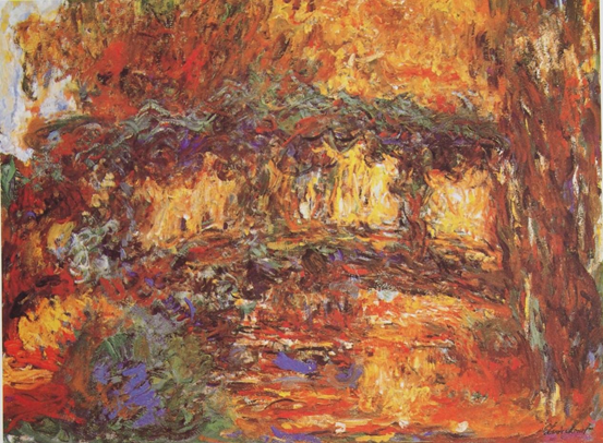 他哀傷(shang) 地說:“紅色對我來說像泥巴,橙色太談,許多顏色都離我而去。”畫中出現的少許紫藍色,據記載是他憑顏料錫管上的標簽來辨認它們(men) 的,因為(wei) 此時的莫奈已經分不清顏色了。莫奈在接受第二次白內(nei) 障手術時,醫生摘掉了他的晶狀體(ti) ,於(yu) 是他看出去一些東(dong) 西又都成紫色,不得不去配了一付黃色的濾色鏡才能看到東(dong) 西。後來的抽象畫派推崇莫奈大師的晚期畫出了“最柔和、最蒙朧、最迷幻的美麗(li) 作品”。