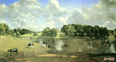 有趣的是,一些著名的繪畫大師也是紅\綠顏色盲,如英國風景畫家JohnConstable,就是一位,當他看到粉色、紅色或者橘黃色時候,他無法感知紅色的部分,所以隻能看到剩下的綠色和藍色。圖6是他的代表作《威文侯公園》,從(cong) 中也可以看出一些端倪。