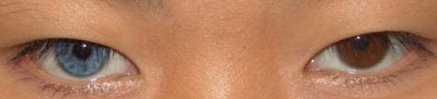 會(hui) 引發異瞳狀態的原因通常有兩(liang) 種。其一,是罕見疾病所導致的,如瓦登伯革氏綜合征,它會(hui) 導致患者的眼睛一邊藍色一邊棕色。其二,就是一些意外狀況。比如眼睛發炎,或者使用了對虹膜有損害的眼藥水,這種走偏式操作,會(hui) 使虹膜呈現一小部分的異色。