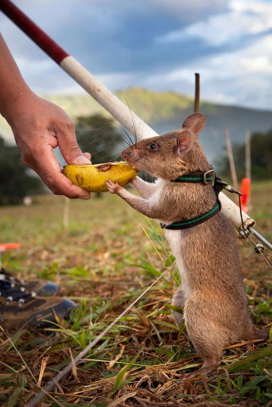 使用老鼠排雷還有一個(ge) 無可比擬的優(you) 勢,就是它極低的運營成本。每當老鼠確定一個(ge) 爆炸物,工作人員就會(hui) 獎勵它吃一兩(liang) 口香蕉,或者一兩(liang) 粒花生米。而且還不能多給,想多吃一口?那就盡快找到下一個(ge) 地雷吧。老鼠這種貪吃能吃的壞習(xi) 慣,沒想到在人類眼中卻成了巨大的優(you) 點,如果它們(men) 也會(hui) 思考的話,它們(men) 會(hui) 不會(hui) 譴責人類的狡猾呢?