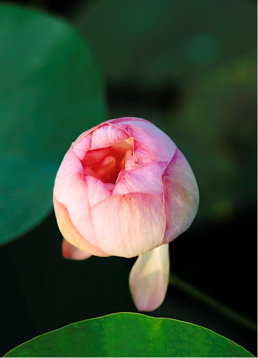 第一天打開的荷花,僅(jin) 打開一點點,但已經可以讓小型甲蟲進去。