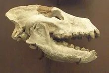 海德尼上犬肩高1.2米,體(ti) 長1.5米,體(ti) 重91—136公斤,長有一個(ge) 巨大的腦袋和強有力的下顎,整個(ge) 頭骨的形態看起來更像獅子,是目前已知體(ti) 型最大的犬科動物,生活在距今800萬(wan) —530萬(wan) 年前的中新世晚期的北美,是恐犬亞(ya) 科中最後演化出的物種。