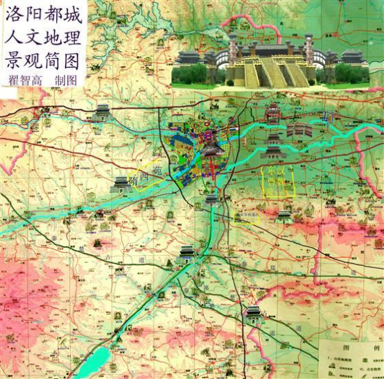 洛陽山川地理五大都城遺址風水圖,製圖/翟智高,來源/網絡