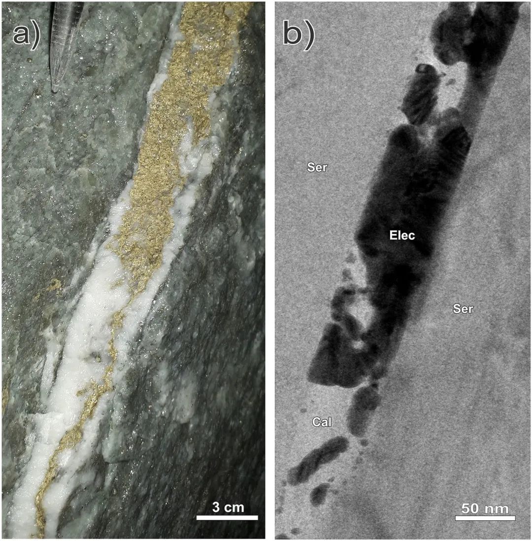 這個(ge) 看不見的神秘魔術師究竟是誰呢?它又是如何把極低濃度的黃金顆粒,從(cong) 地殼內(nei) 收集起來的呢?一個(ge) 多世紀以前,科學家們(men) 就猜測,熱液流過岩石的時候,會(hui) 溶解少量的黃金,並將它們(men) 積聚在地殼的裂縫裏。