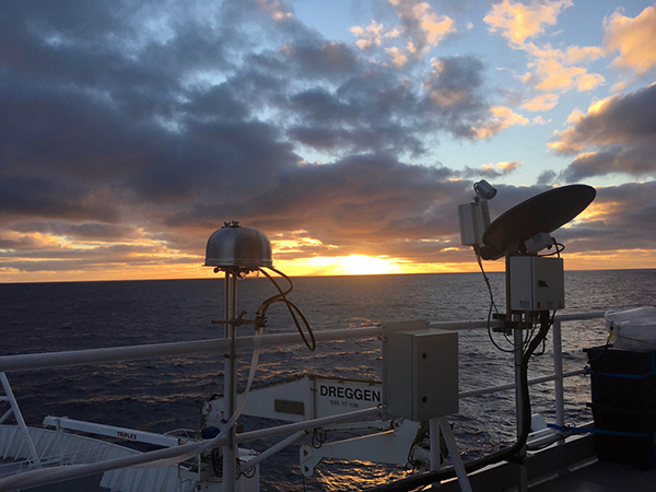位於(yu) 澳大利亞(ya) 海洋國家設施上探測南大洋上空空氣的氣溶膠過濾器采樣器。 (圖片來源:Kathryn Moore/科羅拉多州立大學)