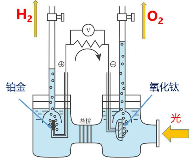 1967年,日本東(dong) 京大學研究生藤島昭在本多健一教授的指導下,將單晶二氧化鈦與(yu) 鉑金電極組成光電化學反應係統。他意外發現:當光照射到二氧化鈦電極時,在沒有外部電源供給的條件下,氫氣會(hui) 源源不斷地產(chan) 生。研究結果發表在《自然》雜誌後,一時間,全世界沸騰了。