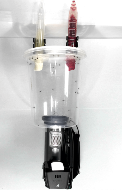 為(wei) 了看看公蚊子到底是喜歡血液還是糖水,研究者們(men) 使用了這樣的一個(ge) 裝置——