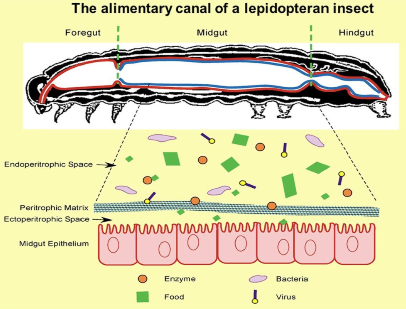 鱗翅類昆蟲的圍食膜(藍色)。圖片來源:(DOI)10.1016/j.jinsphys.2019.103894