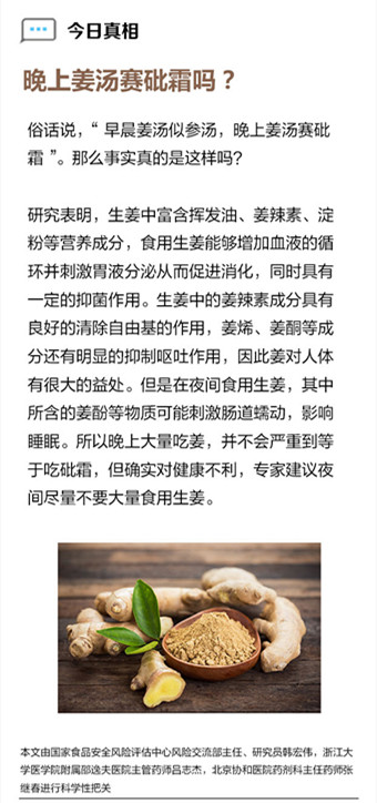 俗話說,“早晨薑湯似參湯,晚上薑湯賽砒霜”。那麽事實真的是這樣嗎?