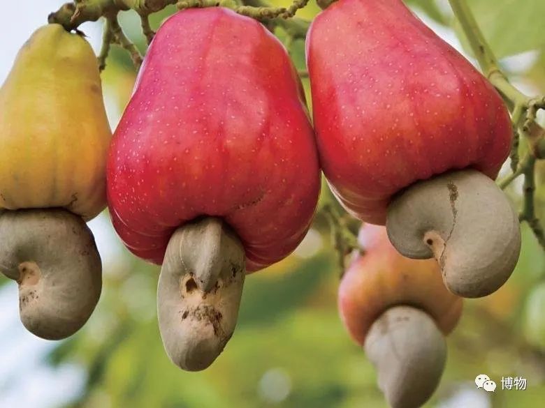 這看起來不是很魔幻?腰果原產(chan) 於(yu) 南美洲,與(yu) 別的堅果不太一樣,它的果實和種子都能吃。果實上部是由花托發育成的“腰果蘋果”,又甜又軟,可以當水果吃。下部長得像個(ge) 蠶豆模樣的東(dong) 西,就是我們(men) 吃的腰果。