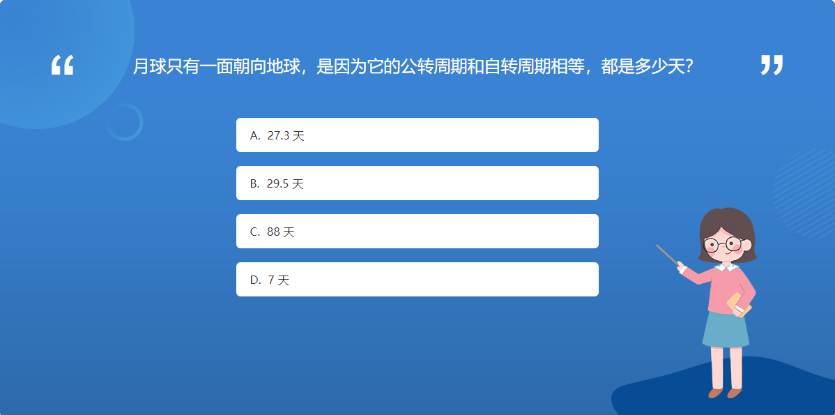 天文科普星空体育官网入口网站:月球隻有一麵朝向地球,是因為(wei) 它的公轉周期和自轉周期相等,都是多少天?