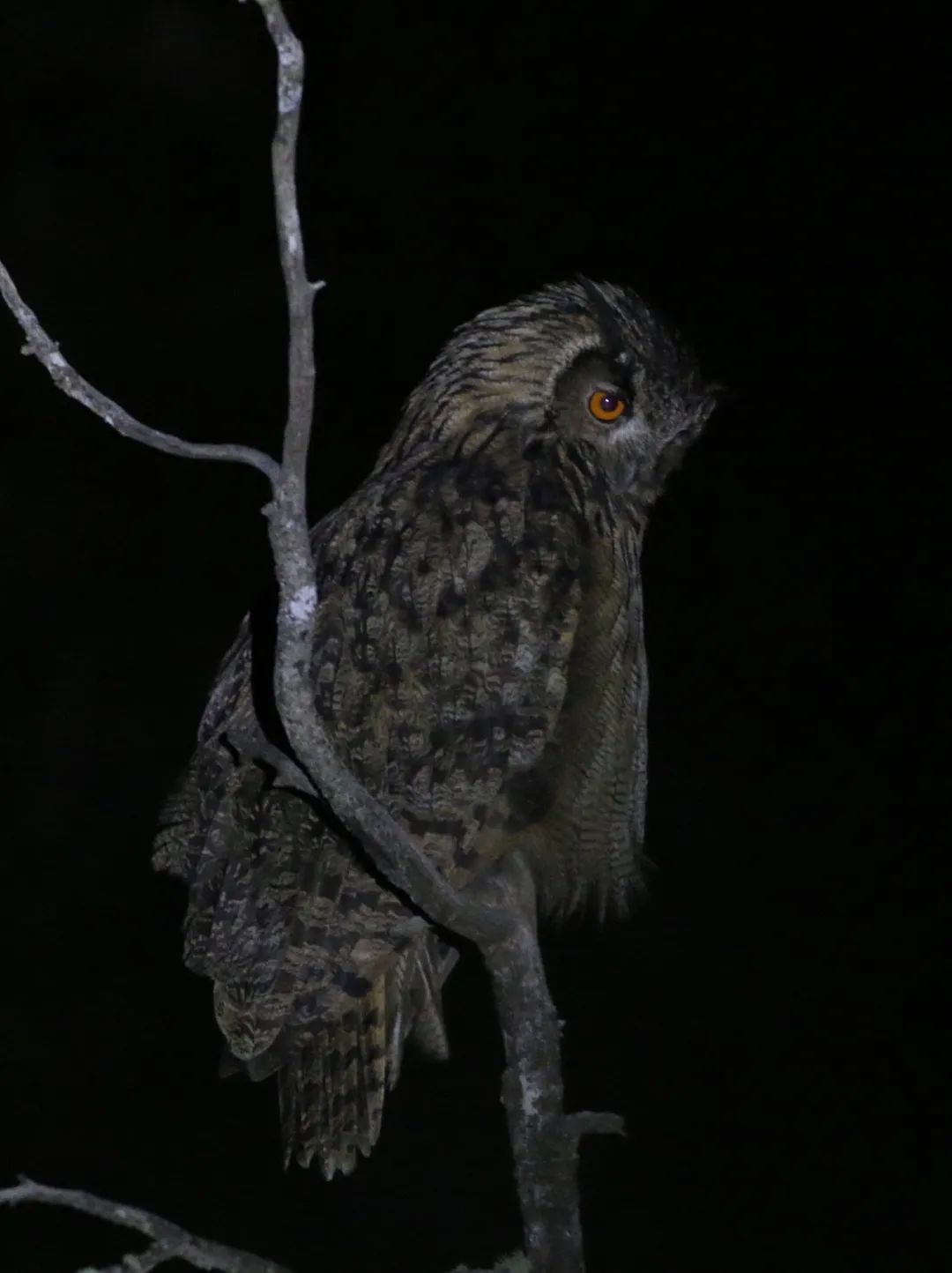 在白天,雕鴞看到人的時候一般遠遠就飛了。但在夜裏,雕鴞就自信得多,有些膽大的竟完全無視人類的存在。