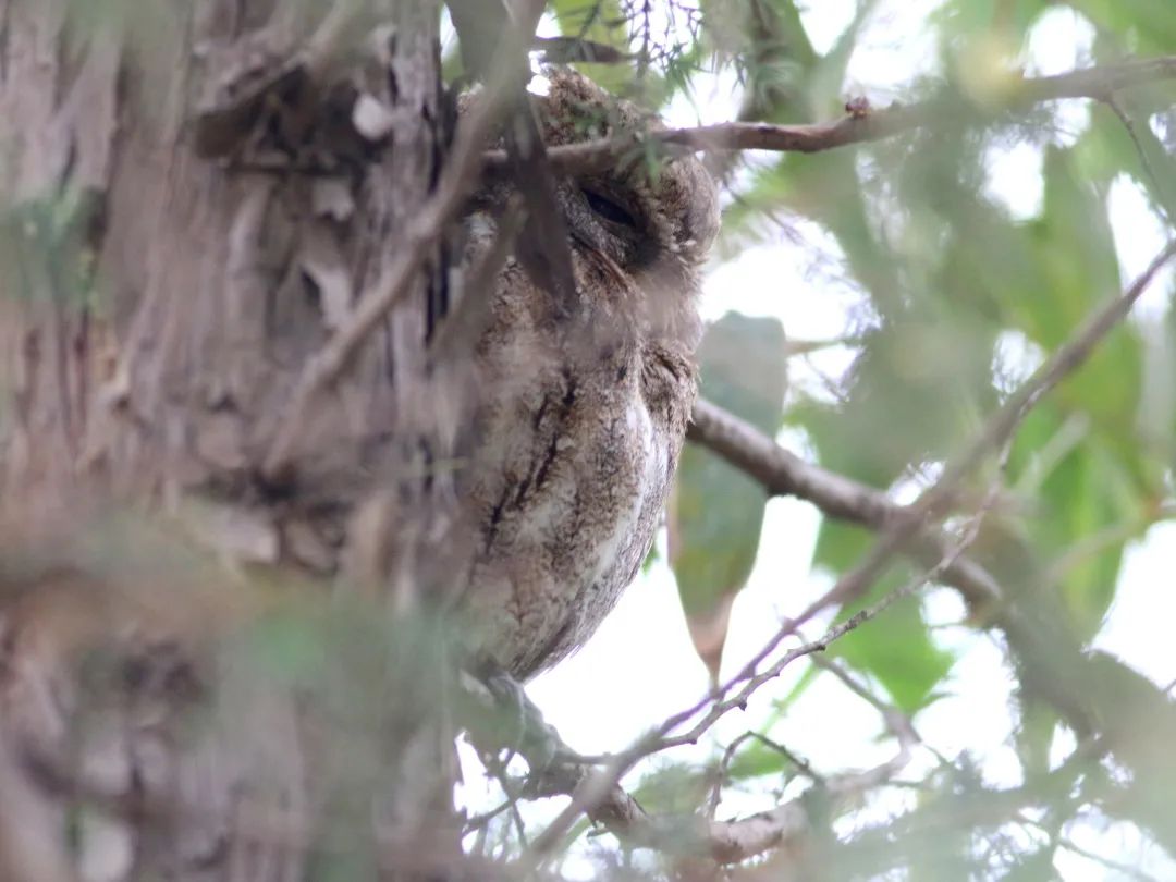 白天紅角鴞也靠著樹幹休息 ©土皮