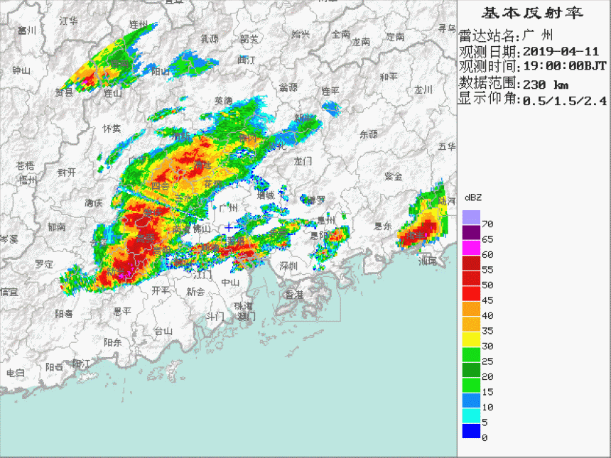 不過,雷達圖一定要動起來看,如果單看一張,我們(men) 無法知道雨未來會(hui) 往哪裏走。這是一次很強烈的強對流天氣過程,通過這張圖,我們(men) 能看出來這個(ge) 係統在往畫麵的右側(ce) 走。再看一下起始時間是19點,結束時間是20點半,也就是在一個(ge) 半小時內(nei) ,它大概會(hui) 從(cong) 廣東(dong) 的高要一帶一直移動到中山附近。如果它繼續勻速往下推,估計在晚上9點半的時候就能推到深圳,那天晚上深圳確實出現了很強的對流。