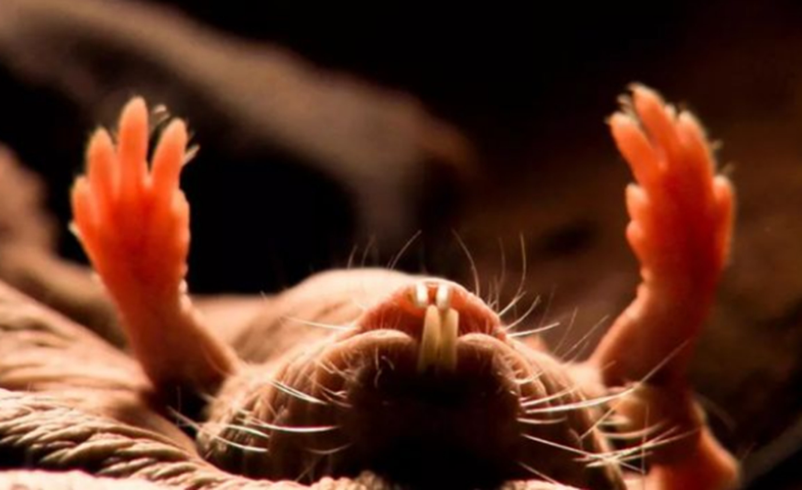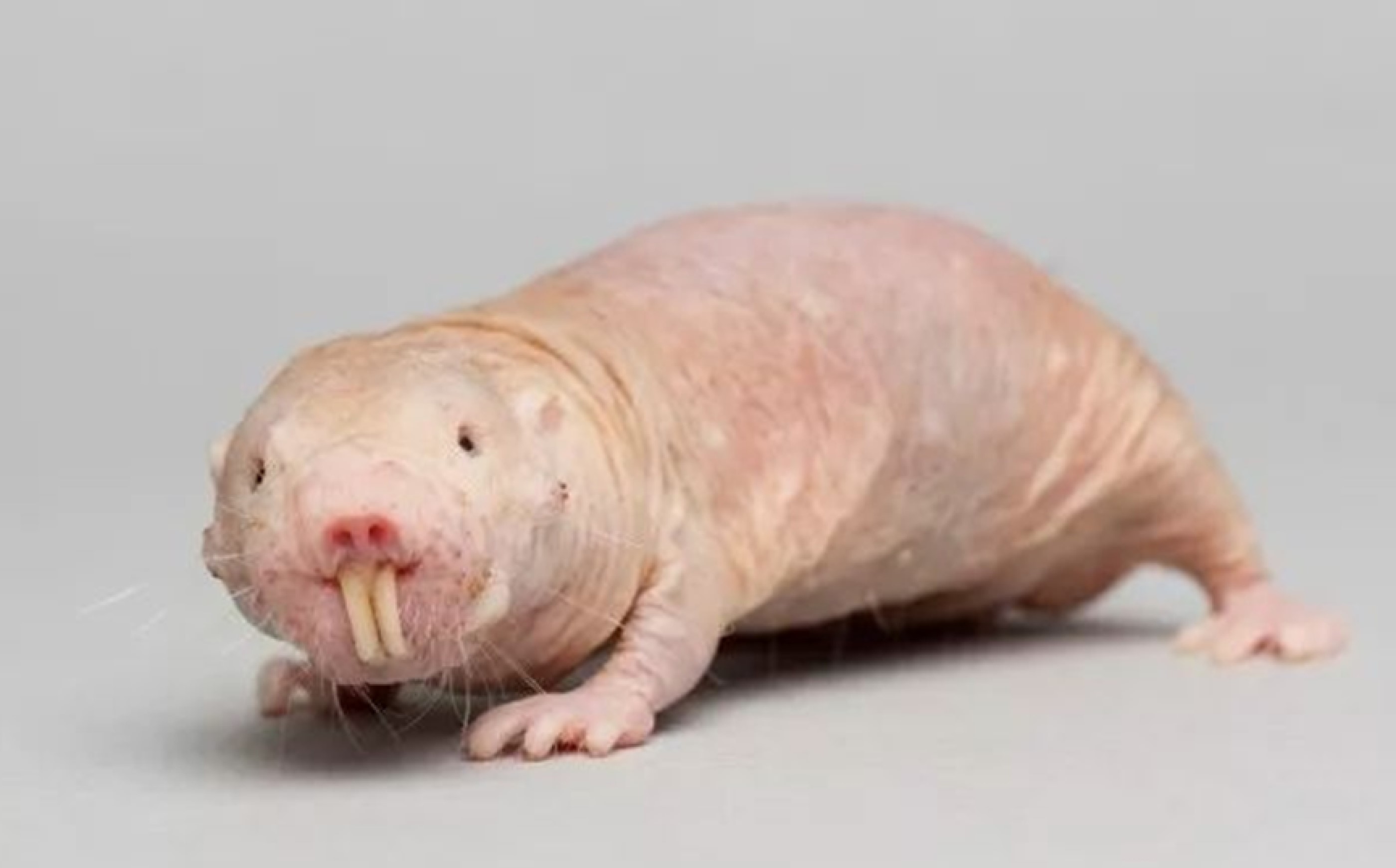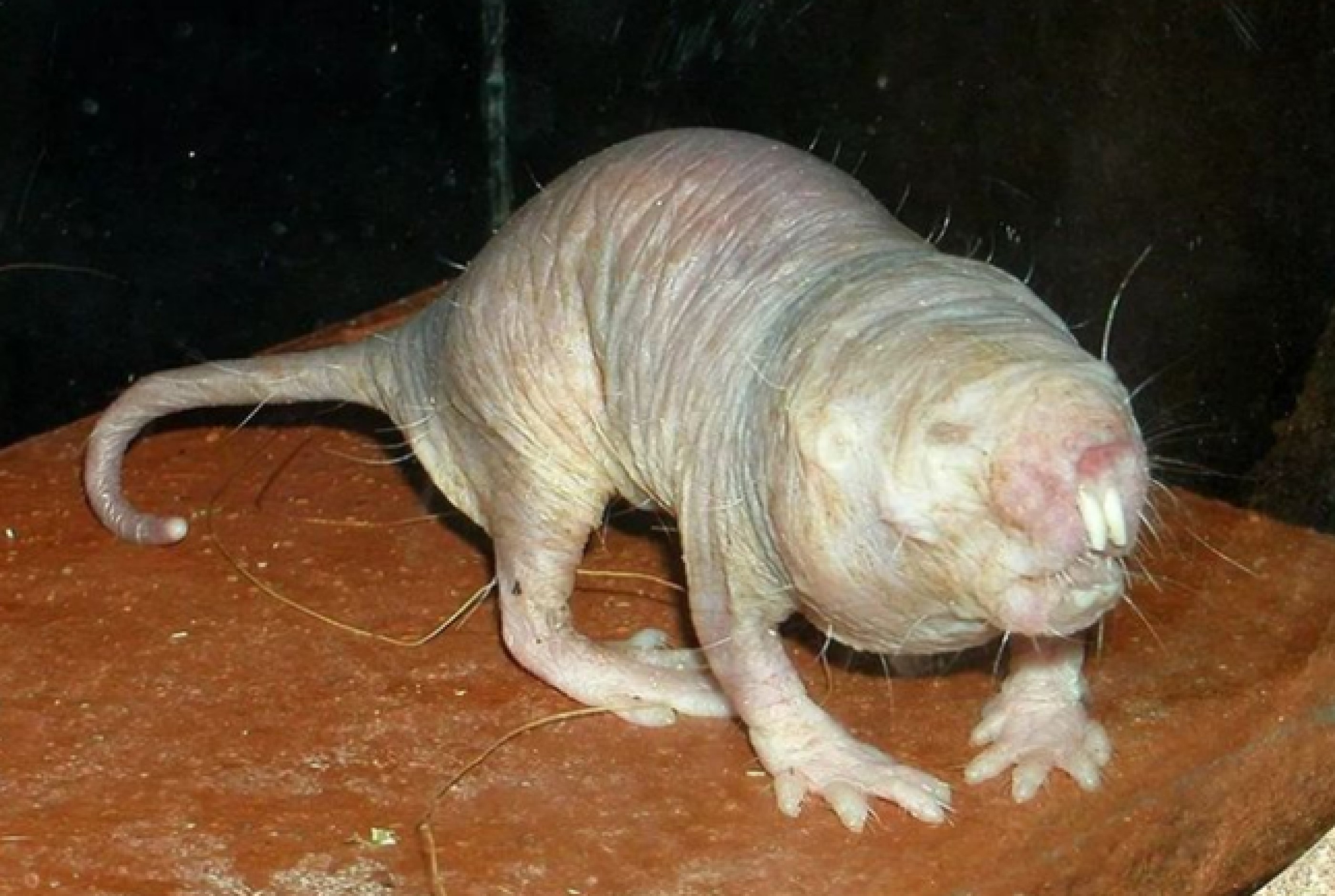 如果要評選地球最醜(chou) 的動物,那麽(me) 裸鼴鼠一定是可以排得上號的。不長皮毛、皮膚幹皺且形同臘腸的身軀,芝麻粒大小的眯眯眼再加上四顆十分明顯的齙牙,尋常老鼠和裸鼴鼠一比,簡直就是萌萌噠。