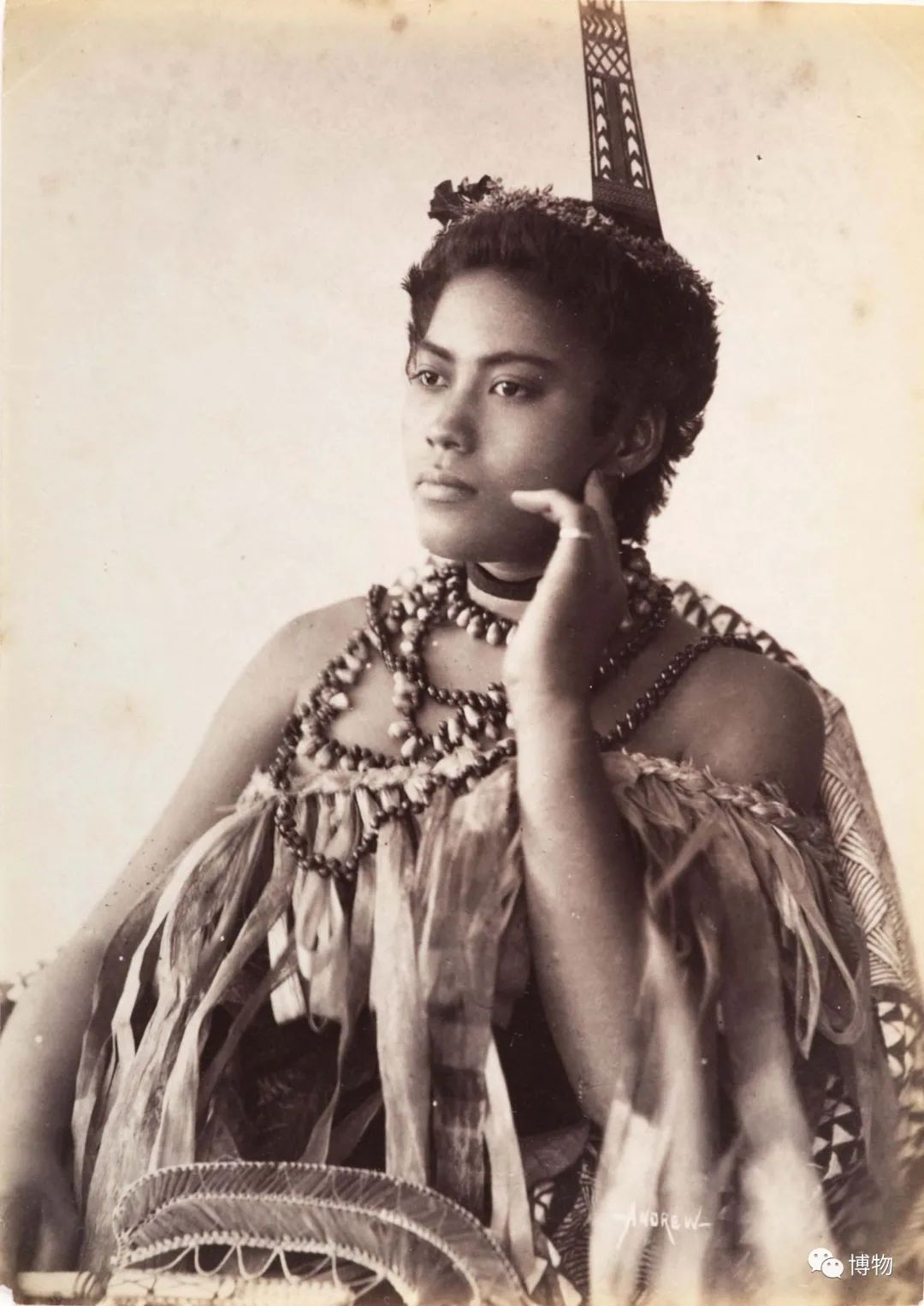 1890年代,盛裝的薩摩亞(ya) 女性:身穿傳(chuan) 統草編服飾,一頭短發上插著裝飾性的木梳,手持藤扇。圖片來源:audley.com