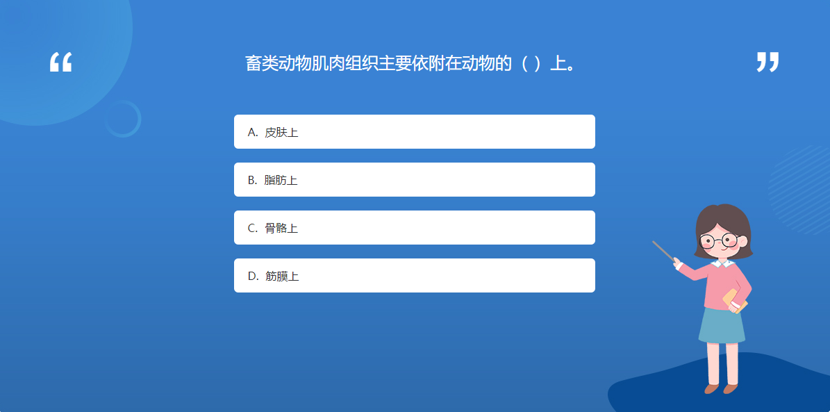 動物科普星空体育官网入口网站問答:畜類動物肌肉組織主要依附在動物的( )上。