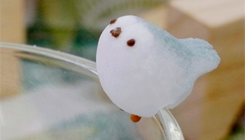 比可愛更吸睛的是它的變身——山雀糖遇水融化後,小鳥會(hui) 變成片片雪花,漂浮在杯中。