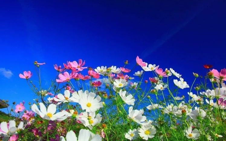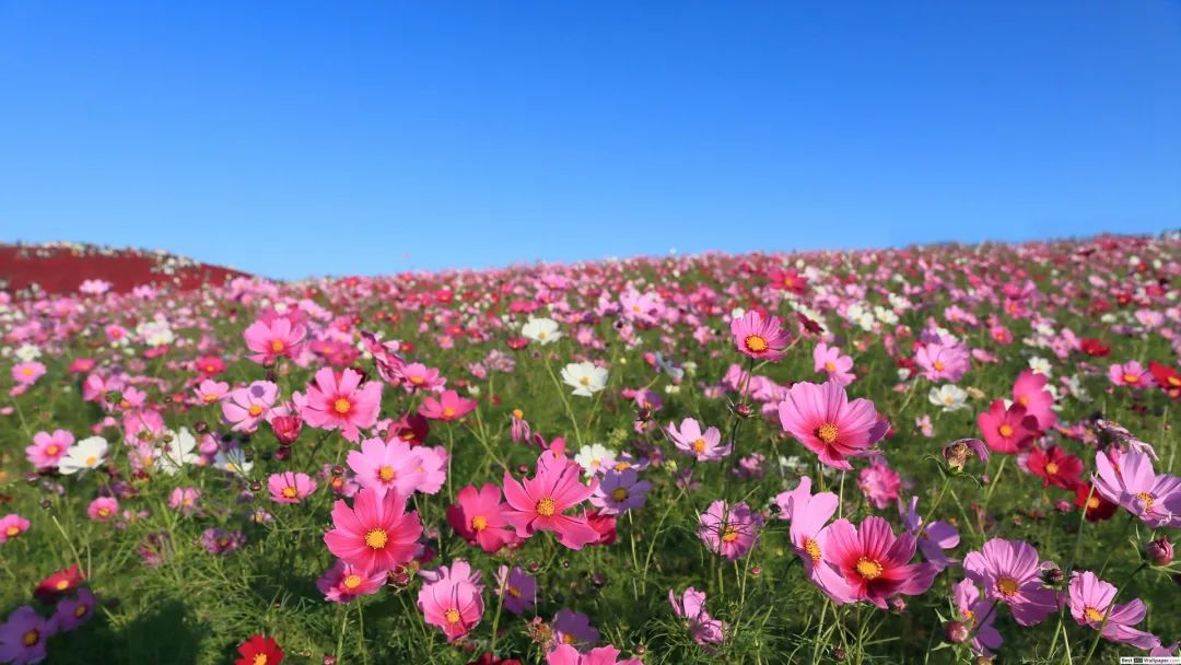 格桑花也不辱其名,真的非常美麗(li) ,在陽光下,在藍天白雲(yun) 下,一朵朵,一片片,白的、黃的、橙的、紫的、粉的、玫瑰紅的,在風中搖曳,令人心曠神怡,情難自禁,真的可以頃刻改變你的心情。