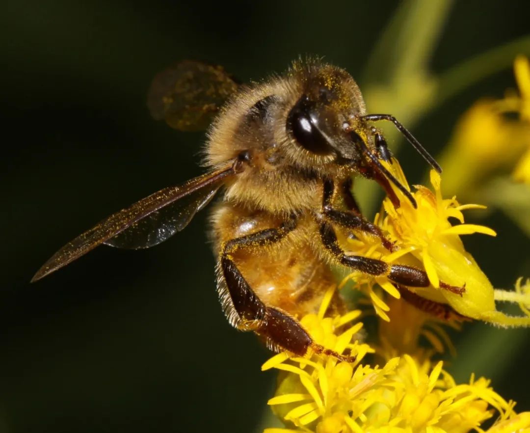 這張圖片大家可以清楚地看到,蜜蜂伸出長長的舌頭在采蜂蜜。