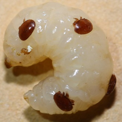 意蜂也會(hui) 遇到一種麻煩,圖片裏蜜蜂身上小小的蟲叫蜂蟎,雖然個(ge) 頭小,它卻是世界養(yang) 蜂的難題。但是我們(men) 用了現在國際上最先進的有機防治方法,不光給他本人解決(jue) 了這一麻煩,整個(ge) 縣的問題都解決(jue) 了。
