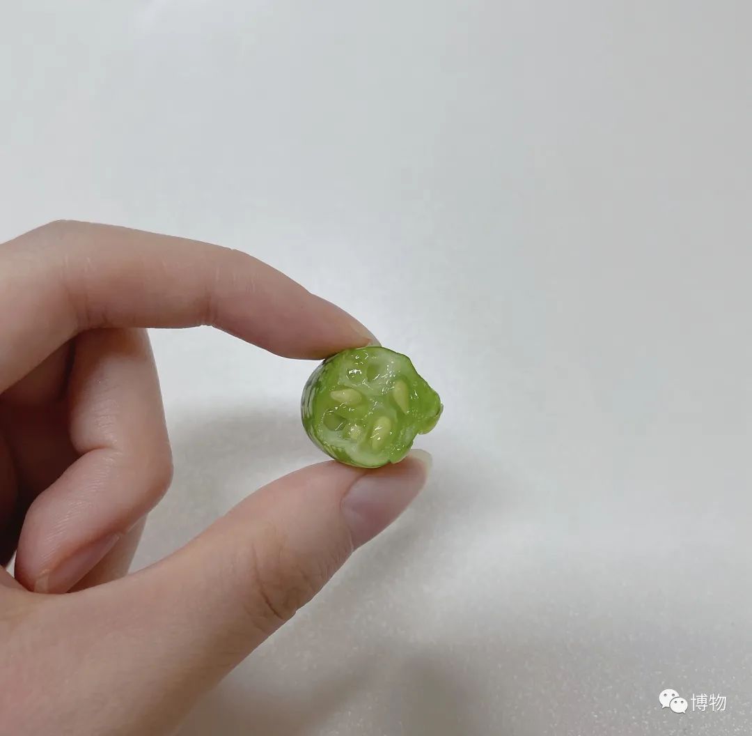 作為(wei) 水果的金鈴子,必須要等到完全成熟,再吃其中包著種子的的紅瓤,甜甜的,甚至有些像剝了皮的葡萄——雖然能吃的部位不多,但也算是苦瓜的逆襲了。