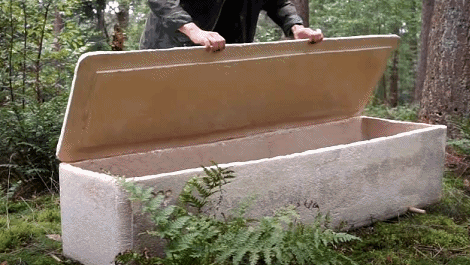 隻需要把真菌和鋸末與(yu) 某種培養(yang) 液混合在一起,放到一個(ge) 棺材形狀的模具裏。