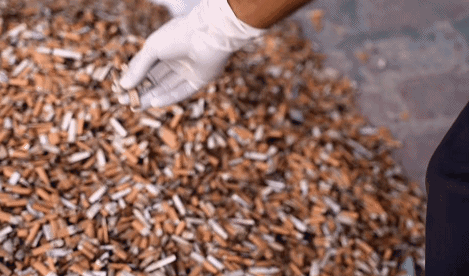 經專(zhuan) 人收集運到工廠的煙頭首先會(hui) 被金屬探測儀(yi) 徹底掃描一番,確認沒有無法被加工的金屬混在其中。