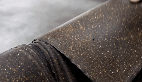 接著,壓花機會(hui) 把他們(men) 加工成跟普通皮革看起來別無二致的樣子。