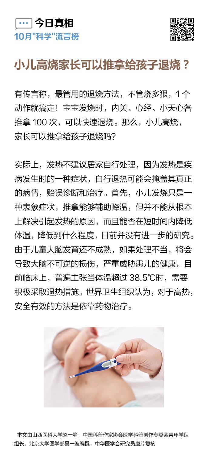 小兒(er) 高燒家長可以推拿給孩子退燒