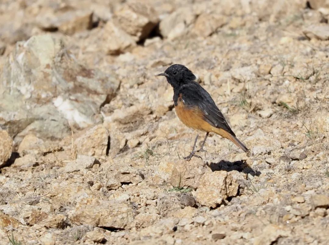 漠䳭到處都是,另一種非常優(you) 勢的鳥是赭紅尾鴝。偶爾會(hui) 有沙䳭或白頂䳭混在裏麵,巨大的岩石邊還有崖沙燕飛來飛去。
