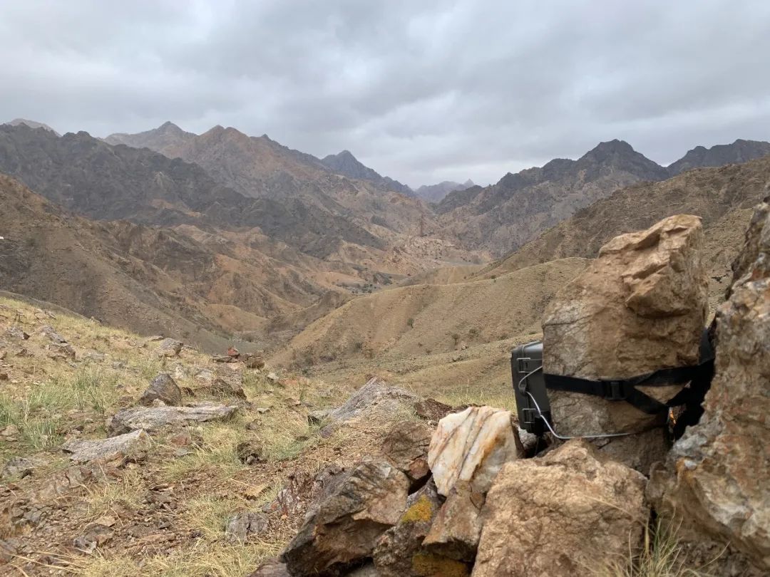 這塊兒(er) 沒有樹木,紅外相機隻能固定在石頭上 ©大貓
