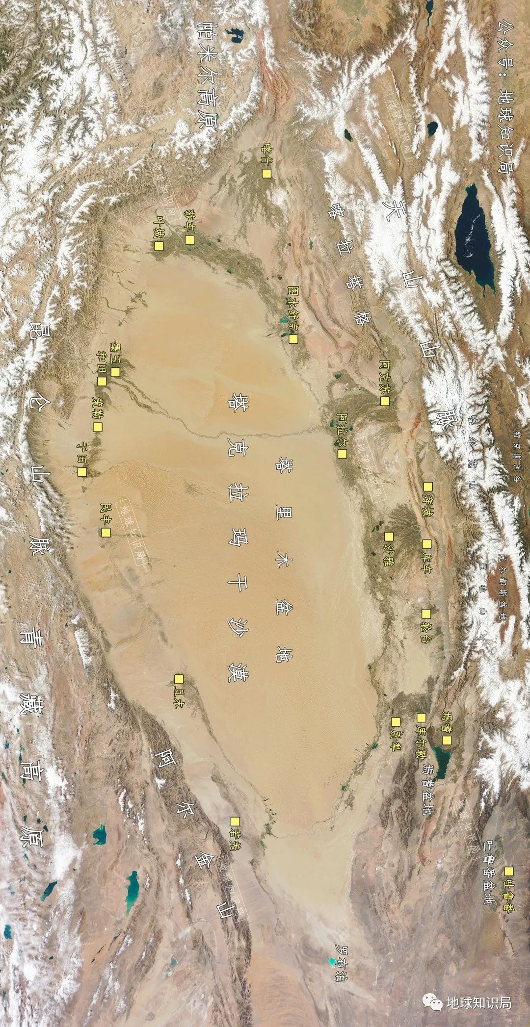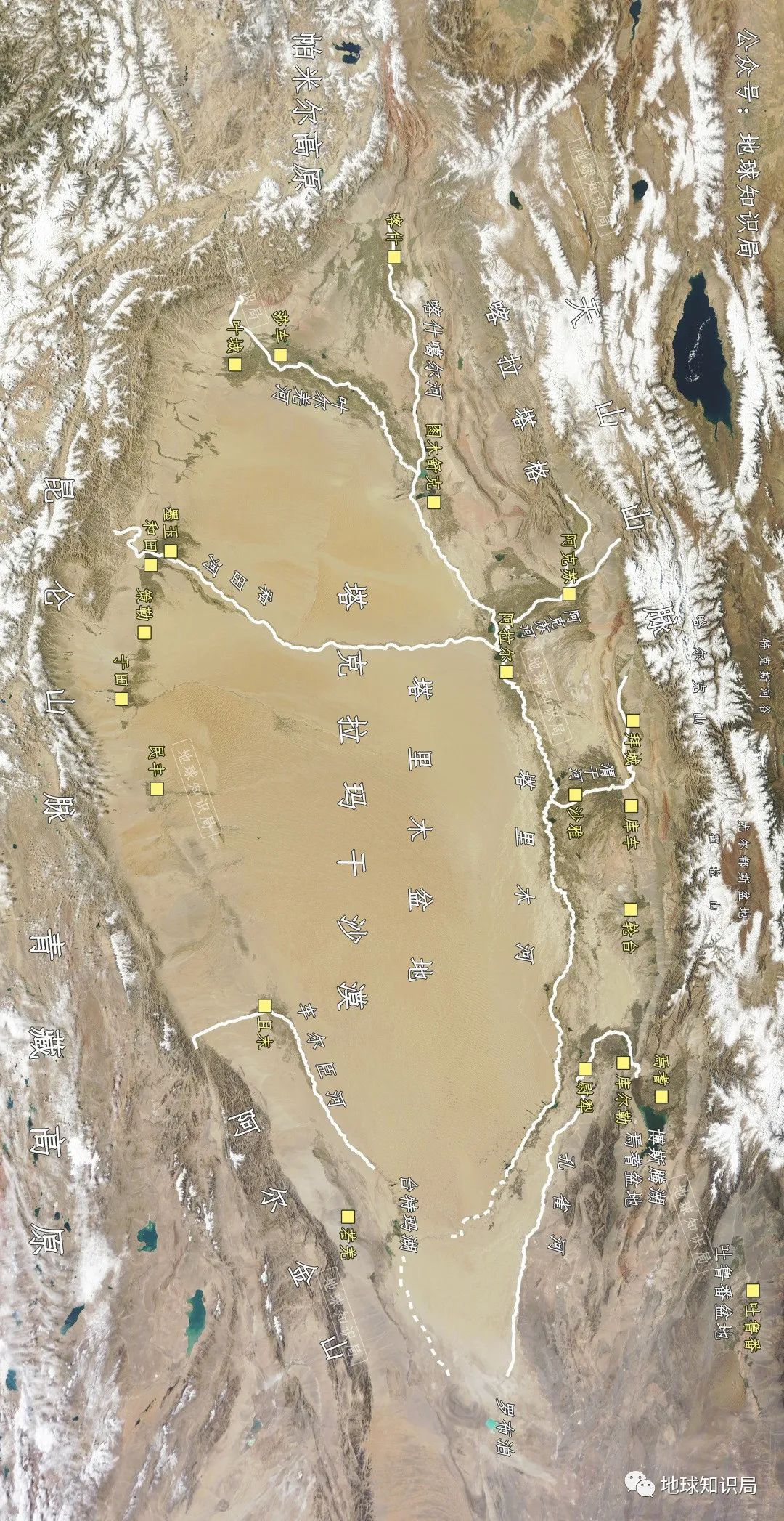 但就在這樣一個(ge) 焦金流石之地,其實水資源也並不少。我們(men) 可以將這裏的水資源情況總結為(wei) 地表水和地下水兩(liang) 部分。其中地表水主要包含肉眼可以看到的河流、湖泊、冰川、永久積雪等。例如塔克拉瑪幹沙漠東(dong) 麵就有我國目前最大的內(nei) 陸淡水吞吐湖——博斯騰湖(1,100 km²),沙漠的腹地中則有我國目前最大的內(nei) 陸河——塔裏木河以及和田河、葉爾羌河、車爾臣河等多條河流留下足跡。