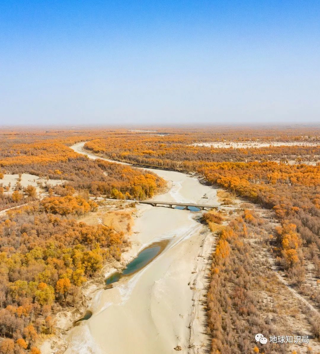 這些河流的源頭來自周邊雪山的融水,雪水融化後流入河道,奔湧向前,在汛期時,水量達到最大,而在其他時間,則會(hui) 在路途中逐漸消失,僅(jin) 是留存下曾經來過的痕跡。例如在塔克拉瑪幹沙漠的北部邊緣,下墊麵就多為(wei) 較風蝕裸露的古河床。
