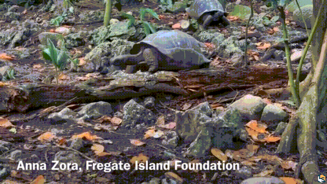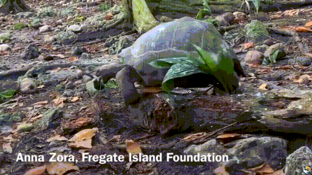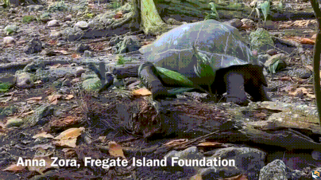 東(dong) 非Frégate島上生物保護的負責人之一Anna Zora,在林地內(nei) 調查海鳥種群時,突然發現一隻雌性的亞(ya) 達伯拉象龜行為(wei) 十分反常。