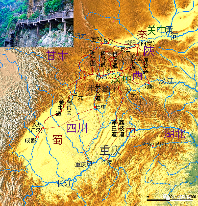 秦嶺山峰眾(zhong) 多,古代先人為(wei) 了打通南北之路,在秦嶺穀中修建了大量古道。而這些古道自然成了戰時重要的交通要道,如子午道、庫穀道、武關(guan) 道、陳倉(cang) 道等。