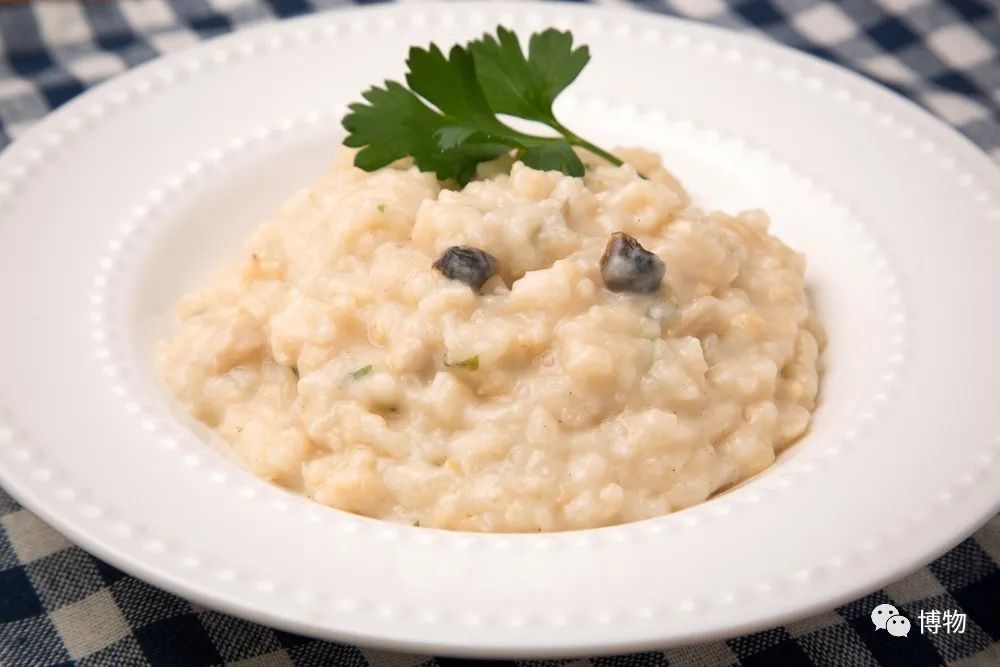傳(chuan) 統的意大利燴飯也是如此,將大米用黃油炒過,加白葡萄酒和奶酪,熬至濃稠,奶香、酒香便是它的賣點。