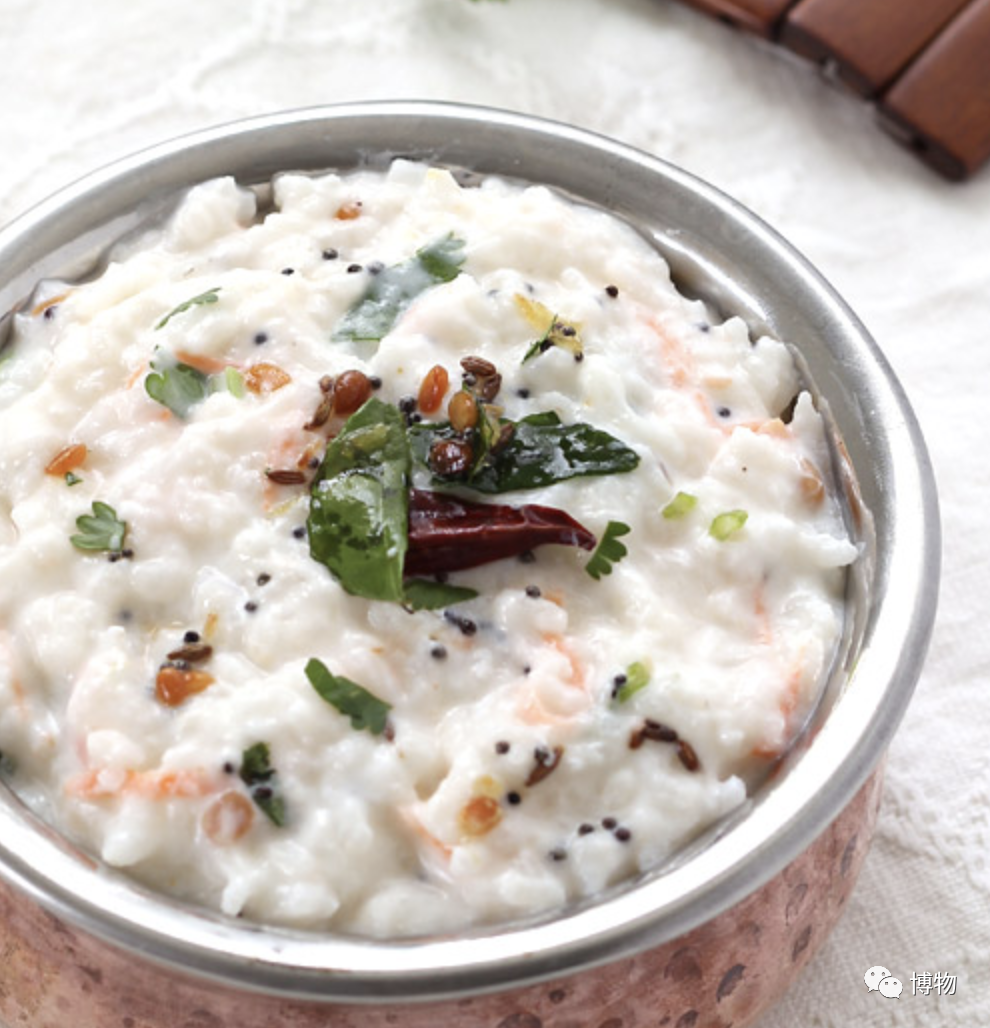 印度南部的“酸奶米飯”就是酸奶加米飯,與(yu) 之搭配還可以加香菜、辣椒、茴香籽等香料。圖片來源:foodviva.com
