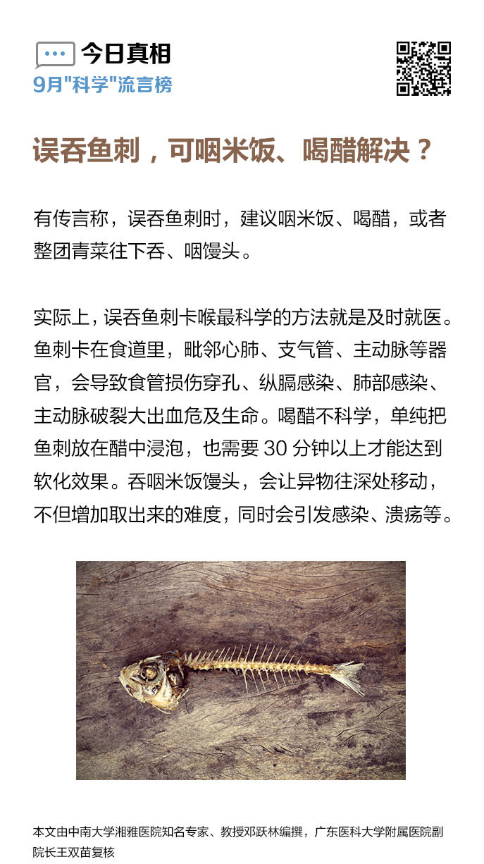 誤吞魚刺,可咽米飯、喝醋解決(jue)