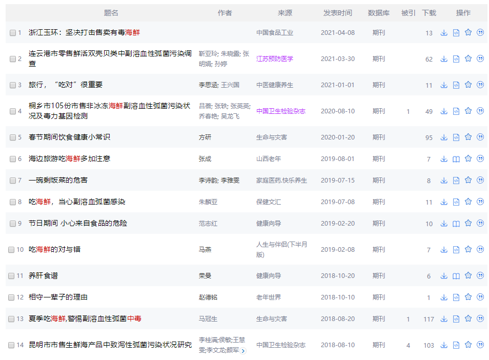 在知網上以“海鮮”“食物中毒”為(wei) 關(guan) 鍵詞搜索