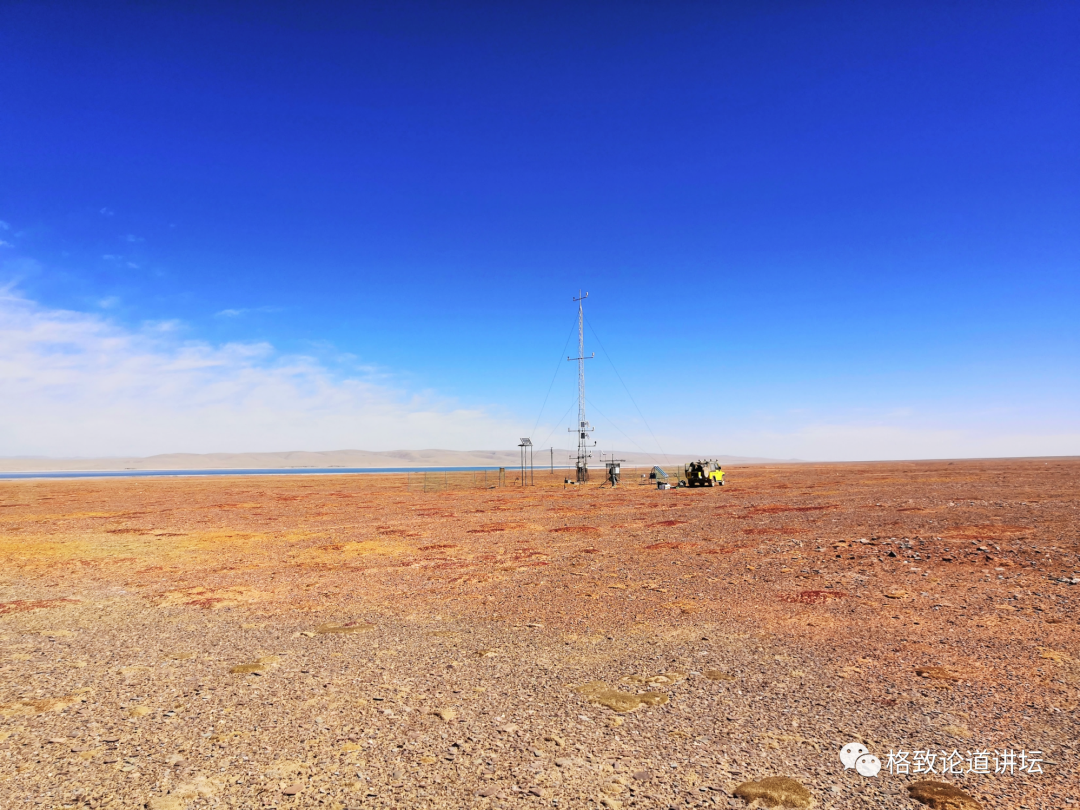 這就是我們(men) 架設在可可西裏的通量塔,最左邊的蔚藍色就是卓乃湖,那是藏羚羊生產(chan) 的地方。
