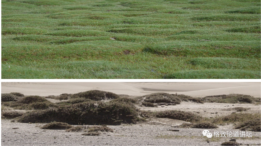 這張很漂亮的照片是高寒濕地,它主要分布在江河的源區、山間的盆地和窪地等相對有水的地方。它的固碳效果比較好,另外也是冬春的草場。在遊牧地區,牧民夏天要到很遠的有牧草的地方去放牧;到了冬天、春天,青藏高原冰天雪地的時候,他們(men) 就需要找到冬季牧草,也叫做救命草,主要就分布在高寒濕地。所以高寒濕地尤其是高寒沼澤,既是我們(men) 重要的碳庫,也是冬春季節缺草的時候畜牧業(ye) 發展的重要場所。