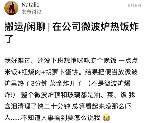 想象中吃著盒飯唱著歌的美好午休在「砰」的一聲悶響後,卻變成了撅著屁股飛速清理微波爐的值日生時間。
