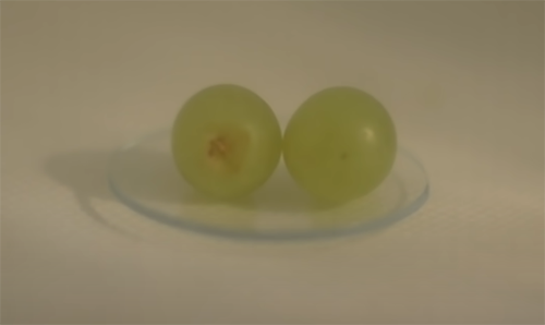 而當兩(liang) 個(ge) 這樣的微波監獄挨在一起時,葡萄皮之間就形成個(ge) 強大的電場,把原本堆積的能量傳(chuan) 給葡萄中的鈉離子鉀離子,產(chan) 生等離子體(ti) ,讓葡萄使出一招噴射火焰。