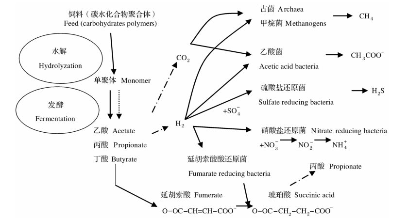 瘤胃中有一個(ge) 複雜的微生物菌群。常見的細菌有纖維素消化菌、半纖維素消化菌、澱粉分解菌、產(chan) 甲烷菌等,其他微生物還包括真菌、古菌和原蟲等。