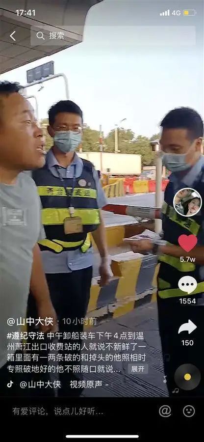 司機情緒非常激動,左手提著半條魚,稱“鮮魚你們(men) 沒一個(ge) 人說是新鮮的,領導來也不新鮮,你們(men) 看看吧……”後來司機將該視頻發上網,稱中午卸船裝車,下午4點就到來該收費站,卻被說不是新鮮魚,氣得自己吃了半條,才被免費放行。