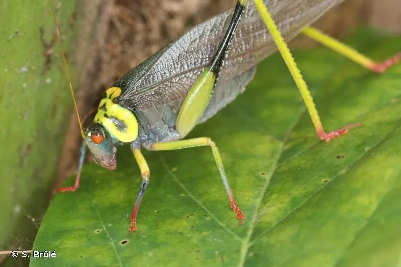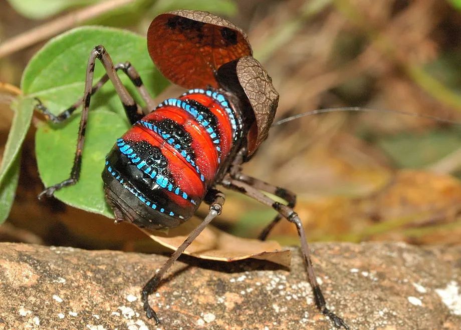 雷氏花螽Pardalota reimeri可能是世界上最鮮豔、最稀有的螽斯之一。如此豔麗(li) 的配色,也預示它們(men) 不好惹。雷氏花螽以高毒性植物為(wei) 食,並且體(ti) 內(nei) 存有有毒生物堿。