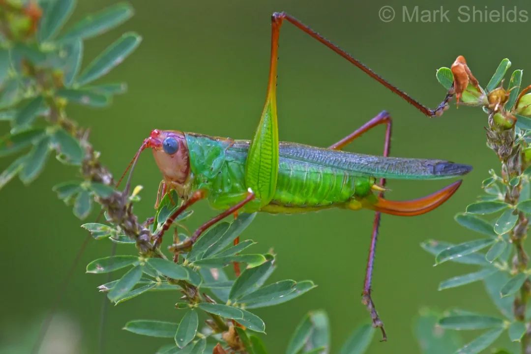 還有些螽斯,乍一看平平無奇,但當它們(men) 亮出腹部時,就會(hui) 晃了你的眼: