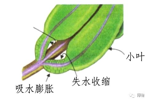 含羞草葉片收縮示意圖